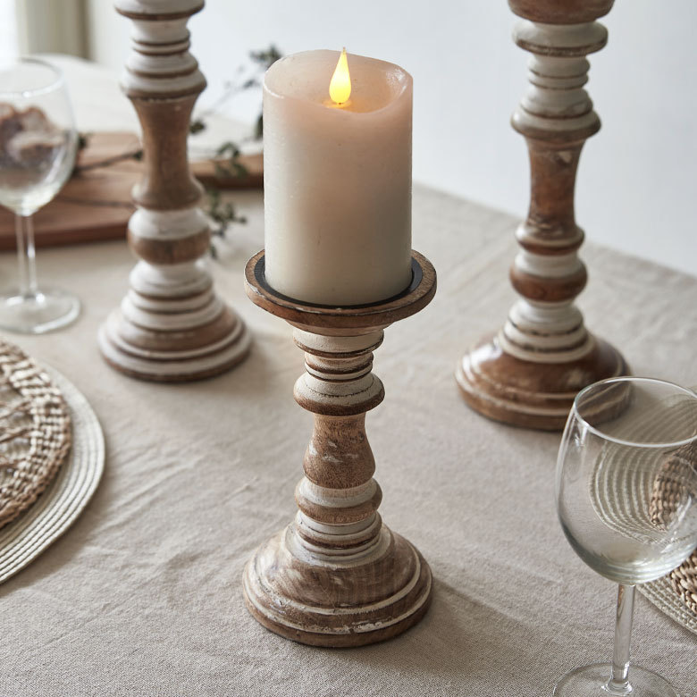 美しい木目と温かみのある風合いが特徴の、天然木マンゴーウッドを贅沢に使ったキャンドルスタンド。