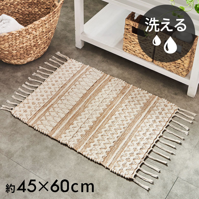 約45×60cmのマットは、洗面所や玄関など小さめのアクセントラグとして活躍。