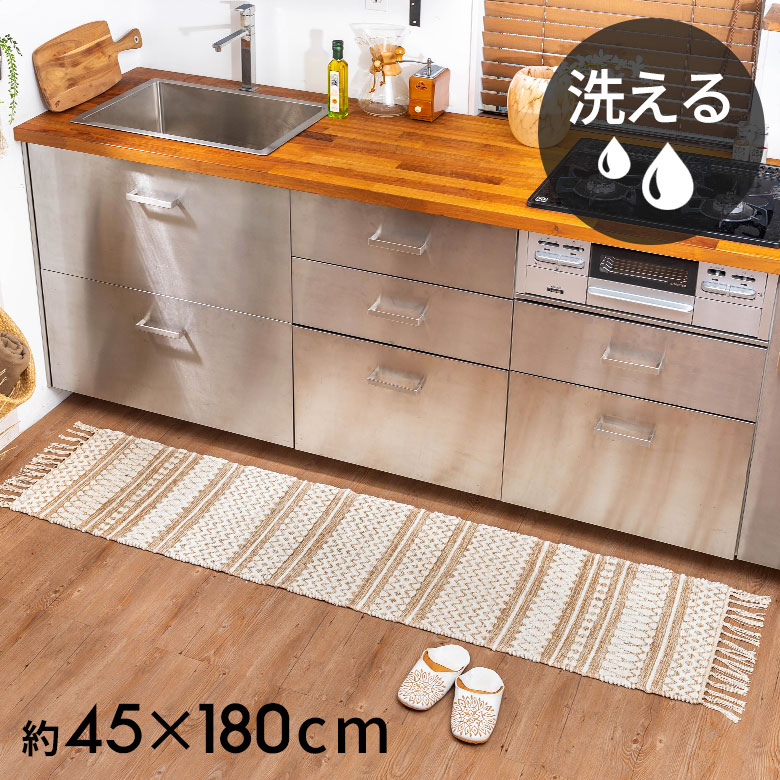 約45×180cmのマットは、キッチンでのご使用にぴったりなサイズ!キッチンのシンクからコンロまで、しっかりカバーしてくれるサイズです。廊下やベッドサイドでのご使用もおすすめ。