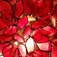 カピスシェルを丁寧に繋いだ、まるで綺麗な花が咲いたようなデザインのアジアンランプ。