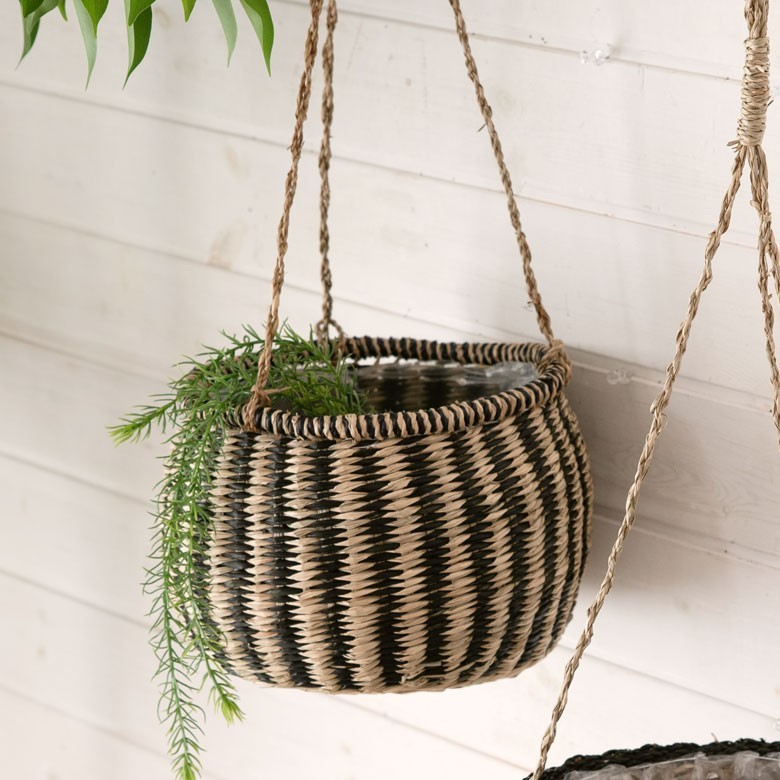 プランターカバー バスケット [ストライプ ] かご ハンギング シーグラス 観葉植物 ガーデニング インテリア 収納 51164