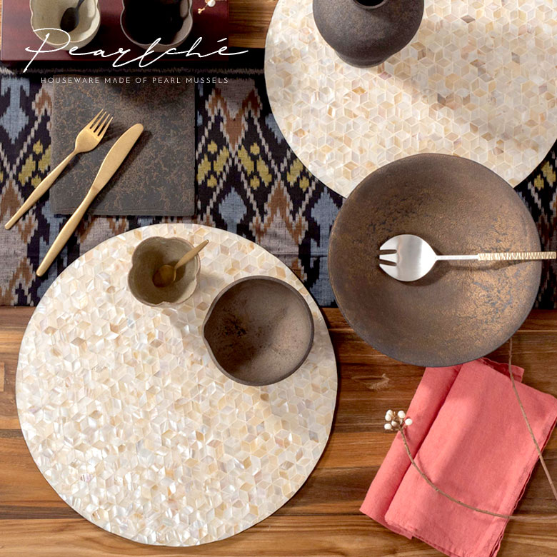 ランチョンマット シェル モザイク柄 パルシェ ラウンド ランチマット プレースマット プレイスマット テーブルウェア 51178