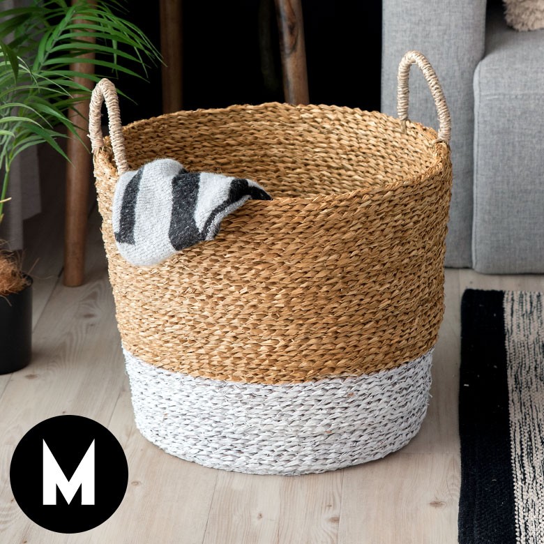 バスケット かご バイカラーバスケット シーグラス 持ち手つき Mサイズ ナチュラル ホワイト ランドリーバスケット カゴ 籠 収納バスケット 51220