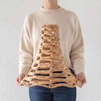 スッキリとした裾広がりのシルエットに、フリルのようなウェーブラインで印象的に。