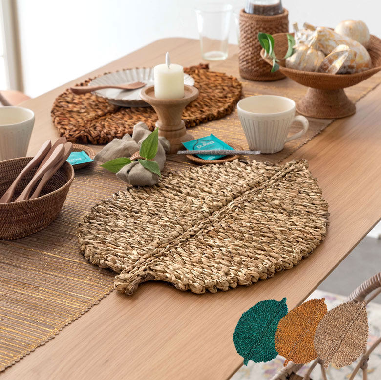 ランチョンマット プレイスマット シーグラス 天然素材 リーフ型 ランチマット テーブルウェア キッチン雑貨 キッチン小物 ダイニング 食卓 51282
