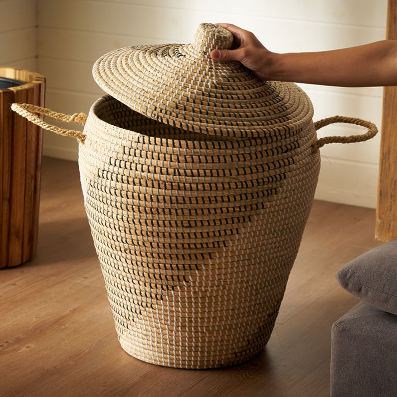 インテリアとして空間を飾りながらも、しっかり収納できるバスケットです。