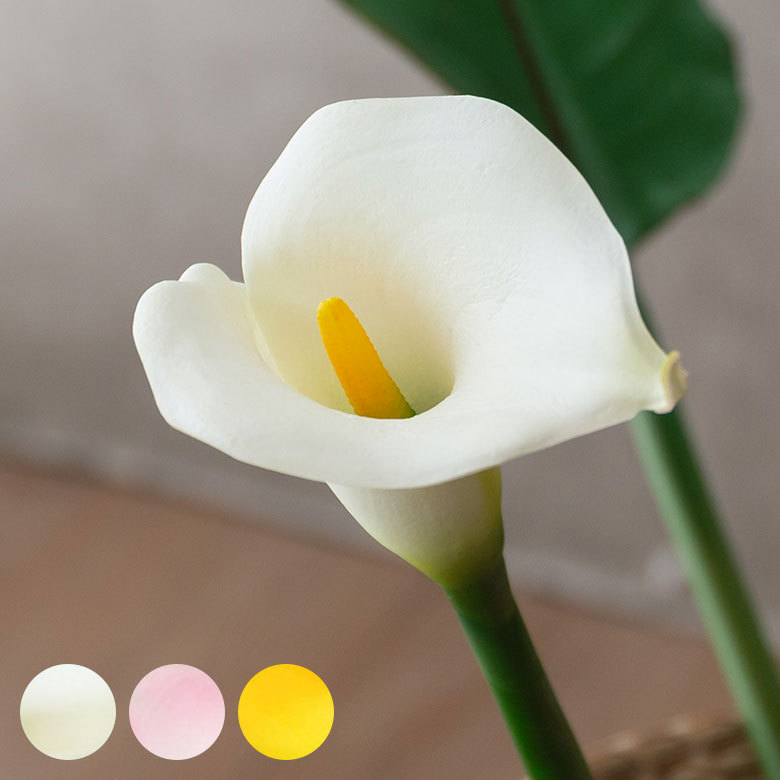 ホワイトのカラーリリーは、フェイクグリーンと一緒に飾ると華やかさがアップ。