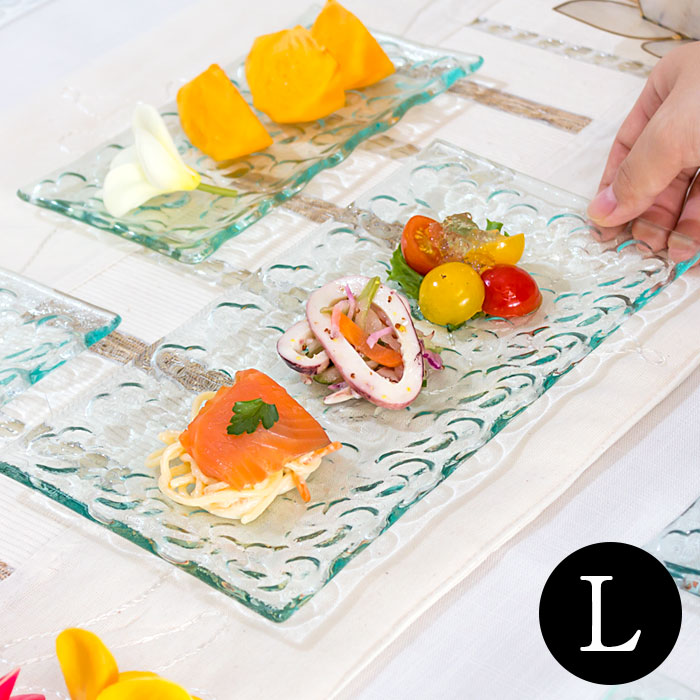 プルメリアをモチーフにした涼しげなガラスプレート 約26×13cm 62231