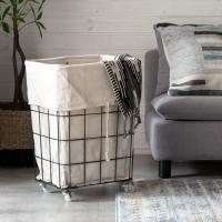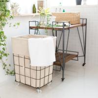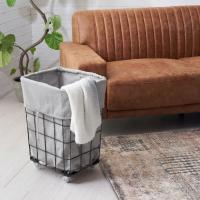 【キャスター付きワイヤーバスケットの特長】ランドリーにもリビングにも。ワイヤーバスケットに内布とキャスターが付いたタイプ。