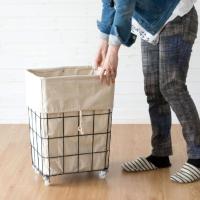 ワイヤーバスケットに内布とキャスターが付いたタイプ。ブラックワイヤーだから、ナチュラル&クールな印象。内布は取り外しできます。