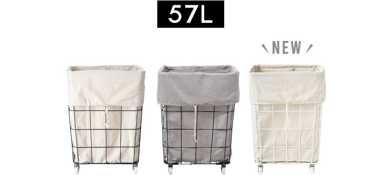 洗濯物をたくさん収納できる57Lの大容量サイズ。カラー違いで、タオル用や衣服用など入れる洗濯物を分けたり、ご家族1人1人使い分けにもおすすめです。