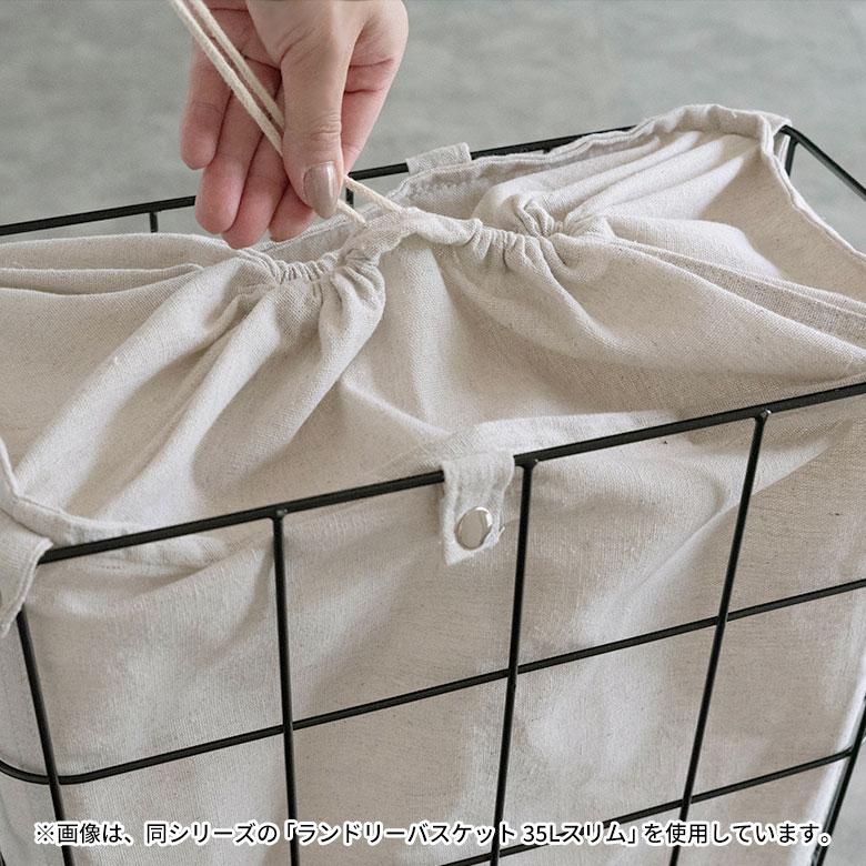 濡れたタオルや湿った衣類も気兼ねなく入れたい方には、別売りの「防水加工ランドリーバスケット」がおすすめ。ワイルにぴったり収まるサイズで、防水仕様だから、脱水後の衣類やタオル、水着、掃除用クロスの一時置きにも便利。ランドリーだけでなく、リビングやキッチンでのちょっとした収納にも活躍し、ワイルの使い勝手がさらに広がります。