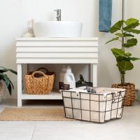 リビングやランドリーでマルチに活躍シンプルでどんなシーンにも似合う、ワイヤーバスケット。