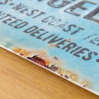 サーフテイスト、西海岸テイストにぴったりのブリキのサインボード。あえて錆びをかけたようなデザインで、ヴィンテージ感たっぷり。凸凹感でさらに本物っぽさをプラス。ウォールデコレーションとしてはもちろん、置いておくだけでもサマになります。