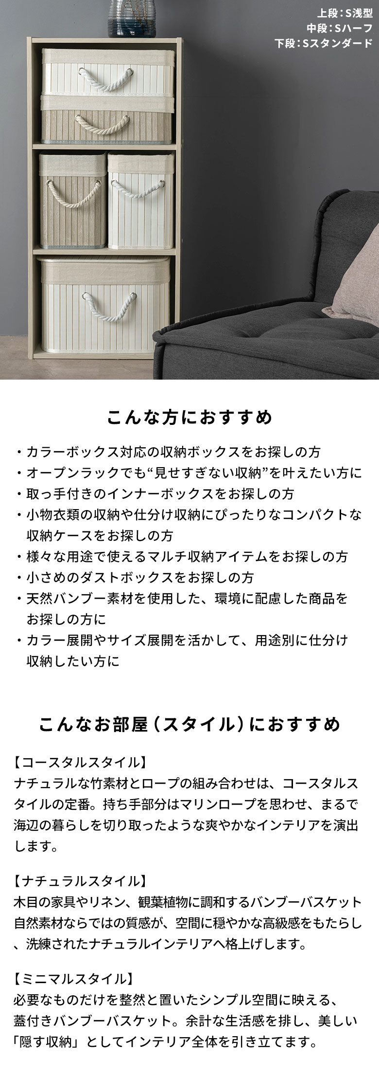 大人気のバンブーバスケットに、小物収納に便利なSハーフとS浅型が新登場!