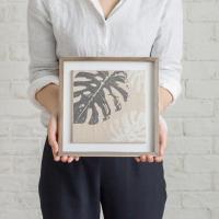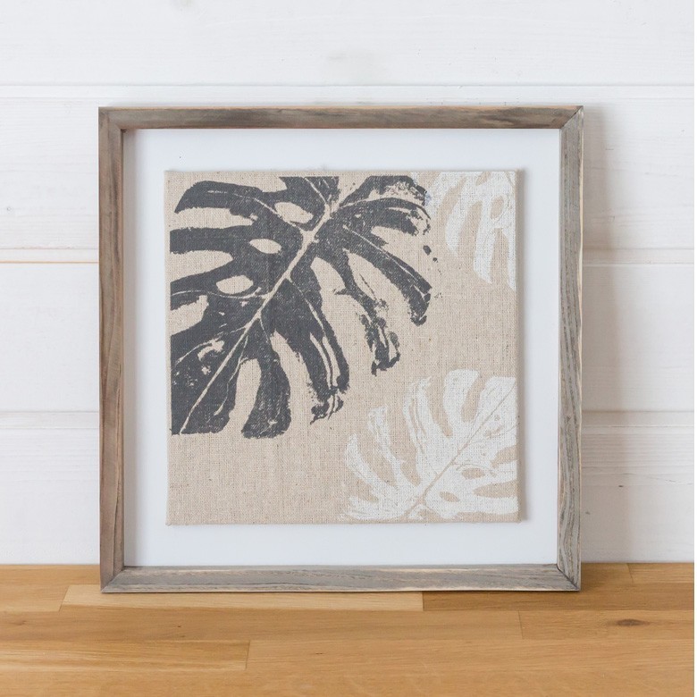アートパネル リーフパネル ウォールパネル おしゃれ インテリア ナチュラル 西海岸 ハワイ ボタニカル モンステラ リネン 麻 デコレーション 66051
