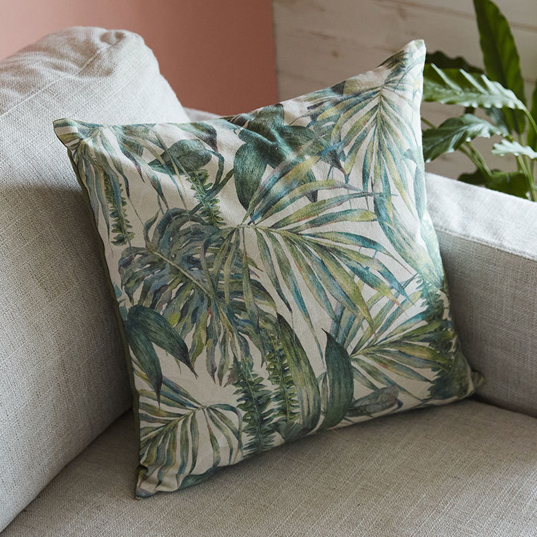 メール便対応 クッション カバー リーフ 柄 洗濯可 洗える ボタニカル おしゃれ 春 夏 秋 冬 トロピカル 西海岸 コースタル ハワイアン リゾート 66200