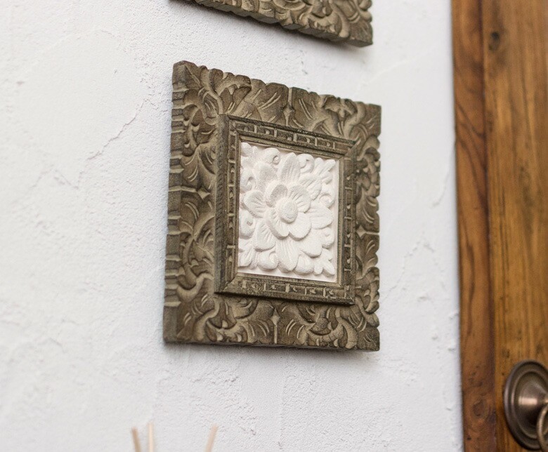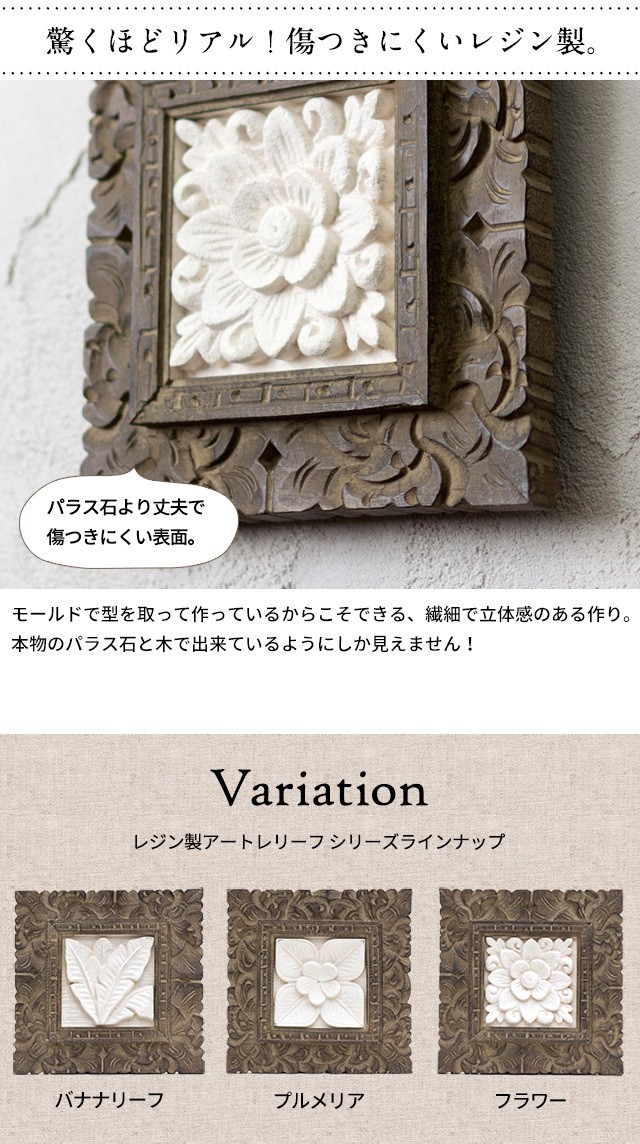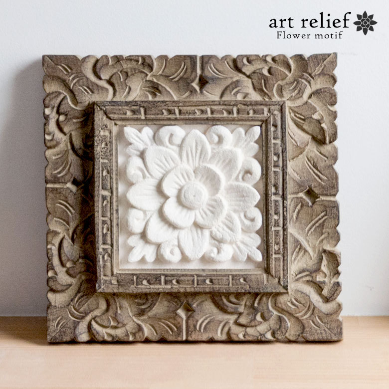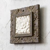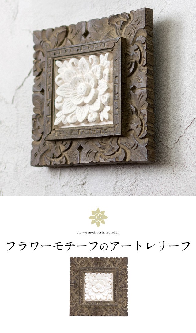 フラワーモチーフのアートレリーフ アジアン雑貨 置物 壁掛け アート フレーム パネル ウォール オブジェ アジアン 雑貨 ストーン調 石風 ディスプレイ 66344