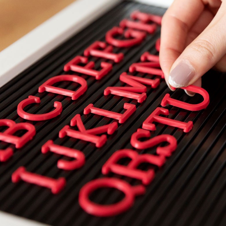 の文字パーツ。大文字アルファベット、数字、記号が合わせて191パーツ入っているので、自由に言葉を作ることができます。