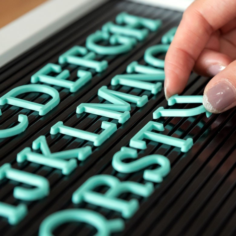 の文字パーツ。大文字アルファベット、数字、記号が合わせて191パーツ入っているので、自由に言葉を作ることができます。