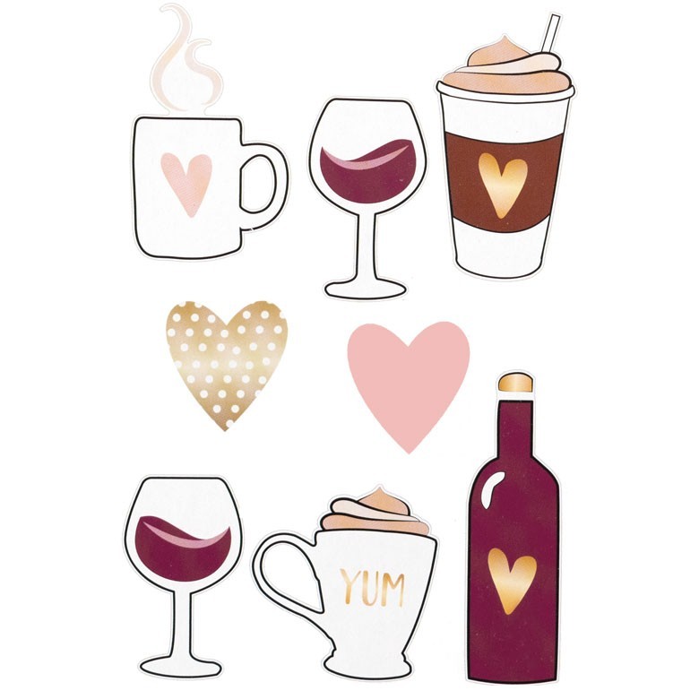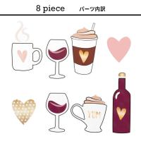 のアイコンパーツ。ワインボトルやグラス、コーヒーカップなど全部で8ピースです。