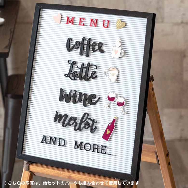 レターボード用文字パーツ アイコンパーツ カフェ レストラン ワイングラス ハート サインボード メッセージボード ウェルカムボード テキストパーツ 66760