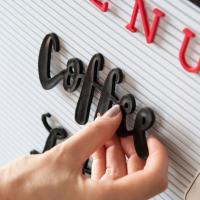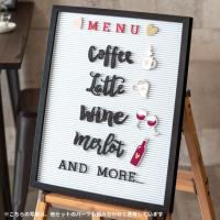 文字の種類は、coffee(コーヒー)、latte(ラテ)、merlot(メルロー)、wine(ワイン)の4種類。つづり字になっており、そのままレターボードにはめる仕組みになっています。
