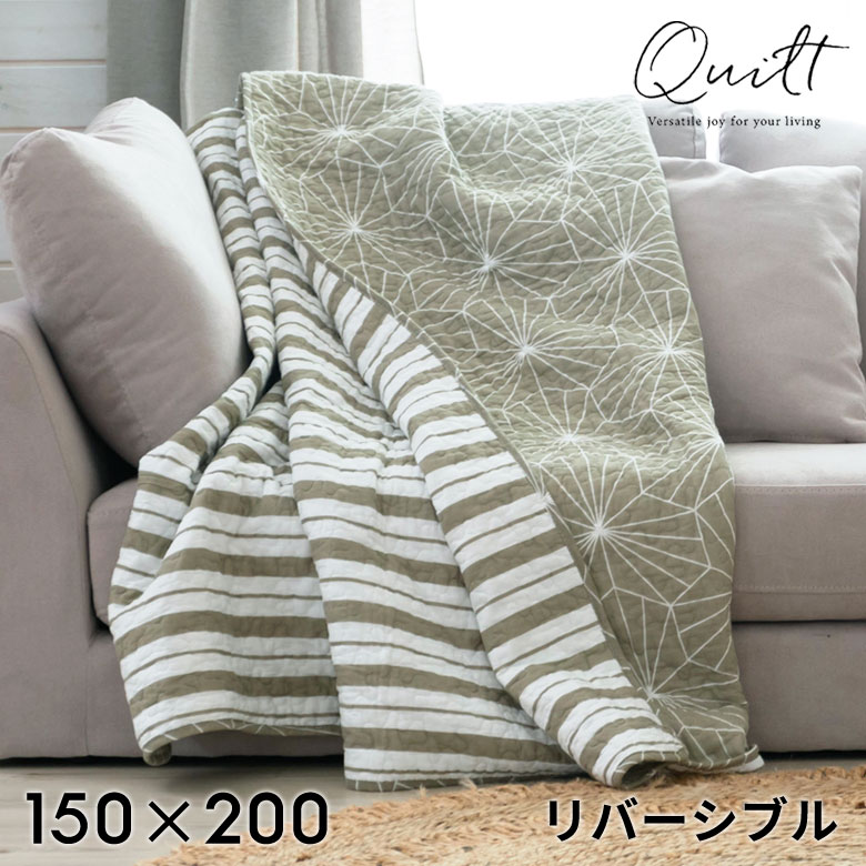マルチに使える大判サイズ(150×200cm)なのでソファやベッドのカバーとして、見た目を変えてくれるだけでなく汚れ防止にも役立ちます。またキルティングで程よい厚みがあり、ラグやジョイントマットの上に敷いて使うことも。