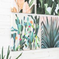 こちらは、お部屋の壁をPOPに彩る、カラフルなお花が咲いたカクタス(サボテン)のアート。眺めてるだけでワクワク明るい気分にしてくれそう。