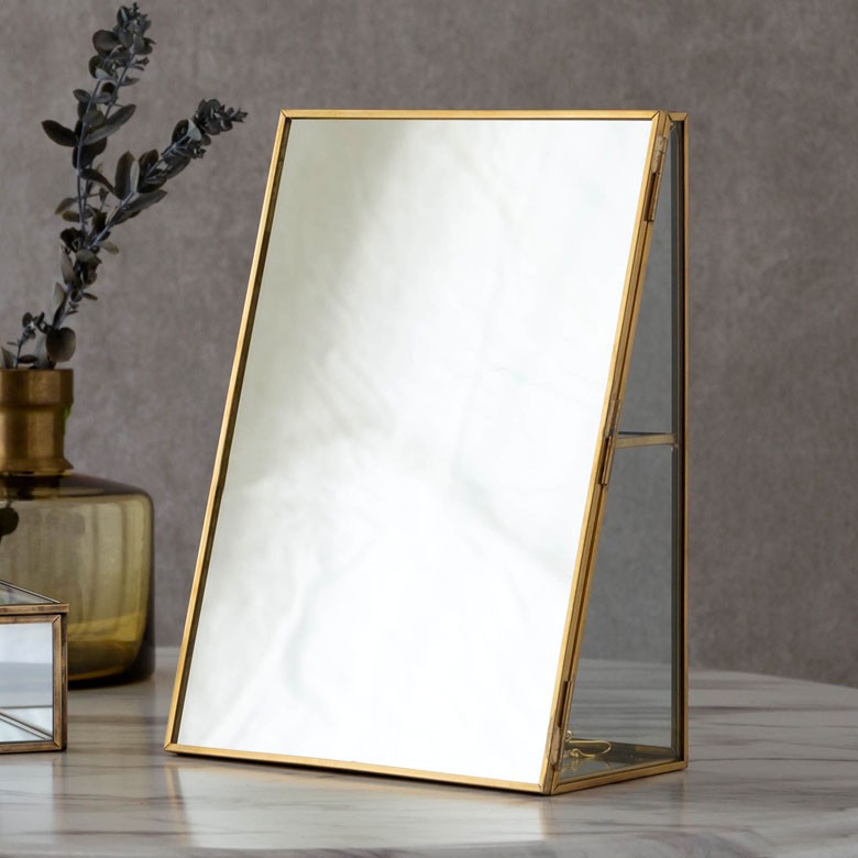 落ち着いたゴールドの真鍮フレームとガラスでできた、