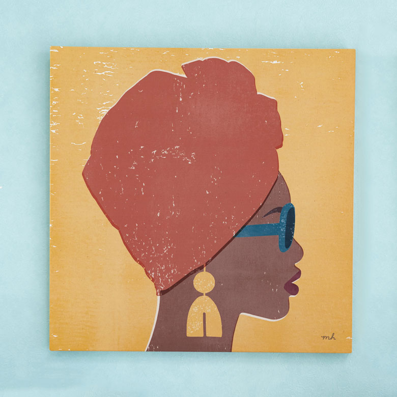 アートパネル 女性 横向き キャンパス パネル 約 W 50cm D 50cm H 2.7cm アフリカン アート キャンパスアート ファブリック調 絵画 壁掛け ピクチャー67019