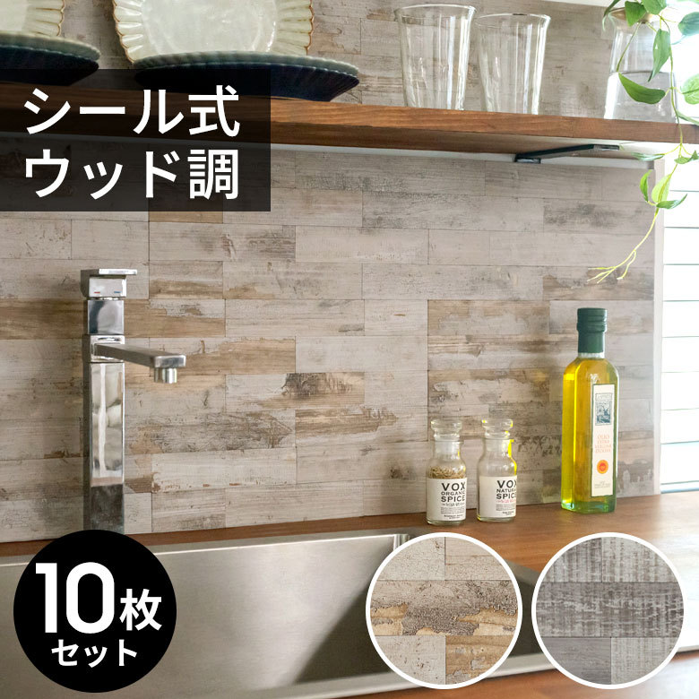 タイルシール ウッド調 木目調 壁材 10枚入り 正方形 水回り 防水 DIY ウォールステッカー 台所 キッチン 洗面所 トイレ 67029-10