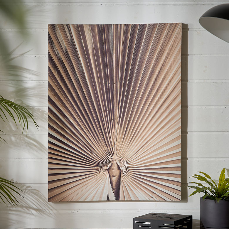 キャンバスいっぱいに広がる、エキゾチックなヤシの葉脈アート。