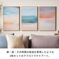 朝・昼・夕の時間の経過を表現したような、3枚セットのアブストラクトアート。
