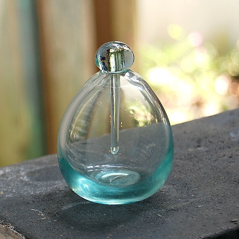 ブルーガラスが爽やかな、丸みのあるスパボトル。実際にスパでも使われているアイテムで、使い勝手は抜群です!