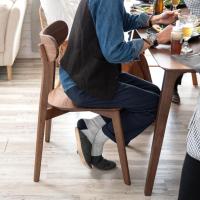 座面と背もたれに天然木の突板を使用した、木目の美しいダイニングチェア。