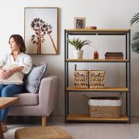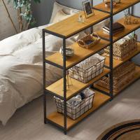 ワイドタイプ [ 4段 ]自然に経年変化したようなラスティックカラーの天然木と、フレームを組み合わせた、シンプルフォルムの家具シリーズ [ hus ヒュース ] のオープンシェルフ。