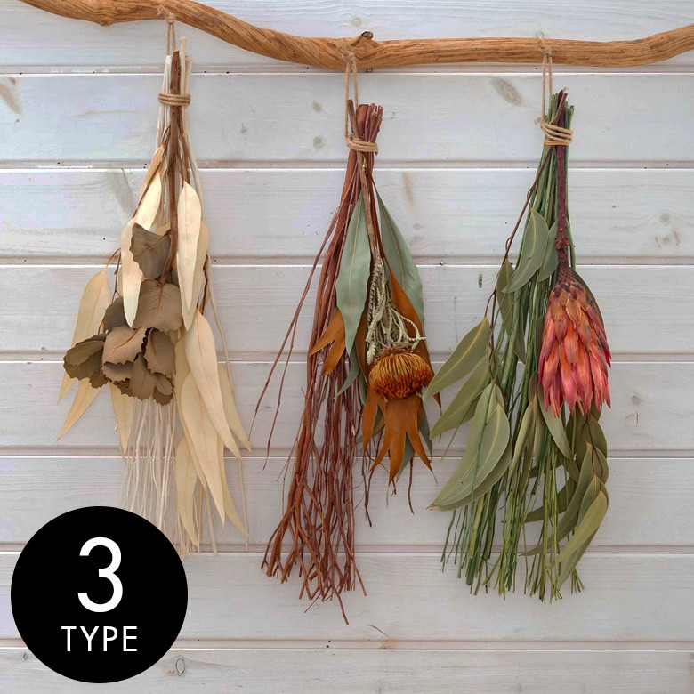 スワッグとしてドアや壁にハンギングしても素敵。すぐにハンギング出来る麻ヒモ付き。