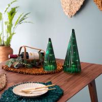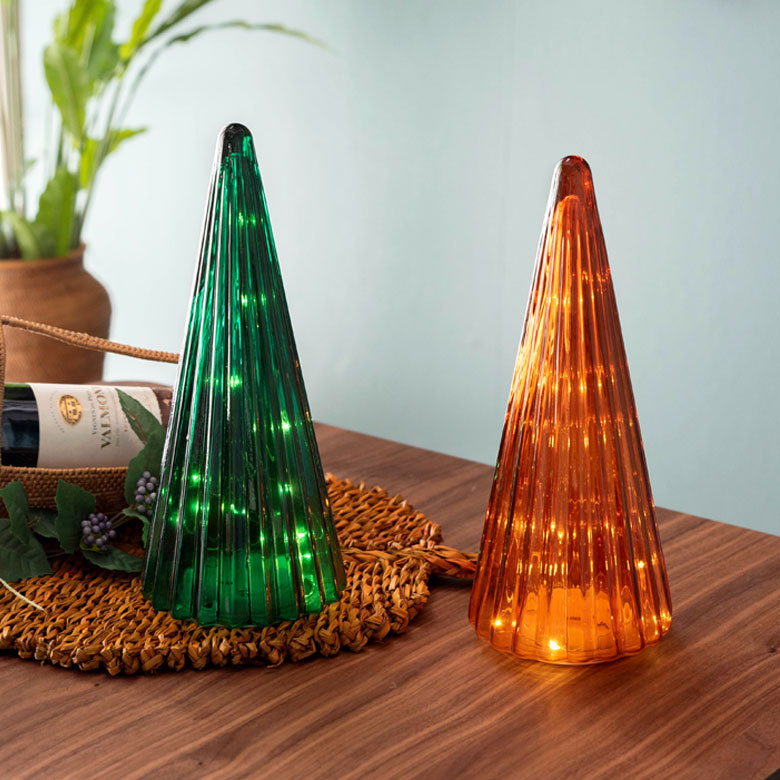 クリスマスツリー 卓上型 飾り 北欧 ガラス LED オブジェ イルミネーション W 13cm D 13cm H 33cm アンバー グリーン 90341