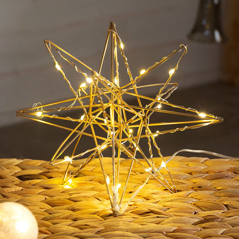 オーナメント ワイヤーアート 星形 LED ゴールド 直径22cm オブジェ 照明 クリスマス 卓上 北欧 雑貨 90348
