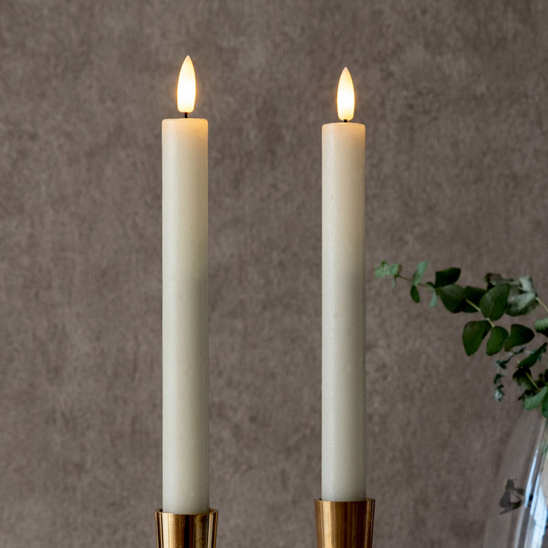 まるで本物のキャンドルのように揺らめくLEDライト。2本セットのスティック型のキャンドルです。
