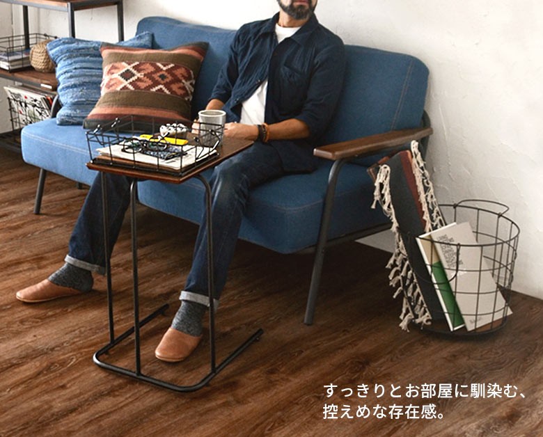 サイドテーブル コーヒーテーブル ミニテーブル 天然木製 スチール コの字型テーブル パソコン アンティーク おしゃれ 91023