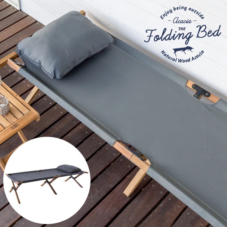 折りたたみ式 アカシア天然木 フォールディングベッド コット 91033 収納袋付 アウトドア キャンプ 野外 屋外 キャンプ用品 レジャー バルコニー リビング 91033
