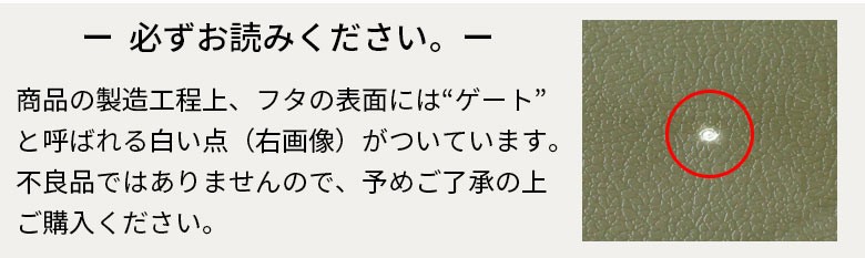 ※フタ表面には小さな白い点が付いていますが、こちらは生産する際に発生するものです。商品の耐性や品質に影響を与えるものではありませんのでご了承ください。