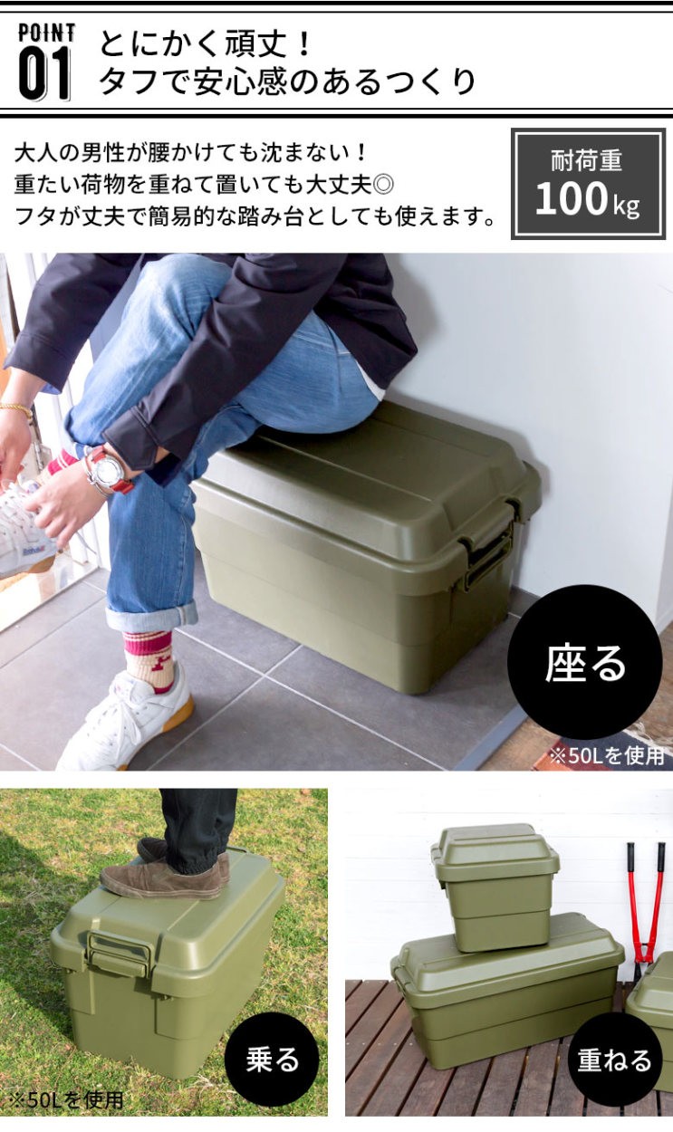 トランクカーゴ 50L ボックス ケース 収納 アウトドア 多目的 工具入れ 持ち運び キャ ンプ 倉庫 耐久性 丈夫 ミリタリー おしゃれ かっこいい 91123