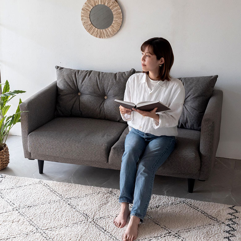 ソファ 2人掛け 2P ファブリック W144cm グレー クッション付き 省スペース 北欧おしゃれ 91498