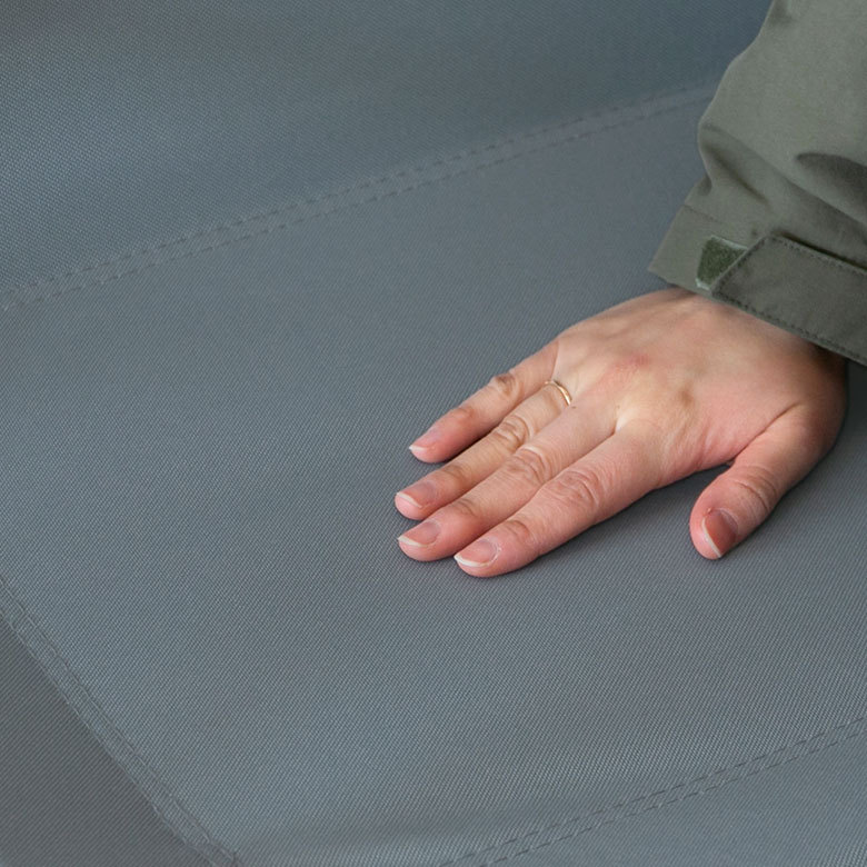 ファブリックの座面がしっかりと体を支えてくれるので、長時間でも疲れにくく快適な座り心地。