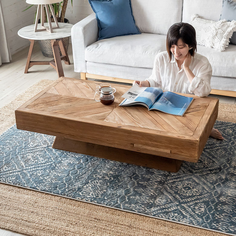 センターテーブル テーブル 長方形 床座 大型 古材 幾何学 おしゃれ ナチュラル ヴィンテージ ロースタイル シンプル 北欧 91520