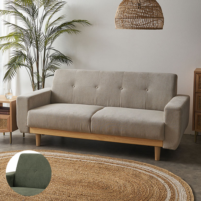 コーデュロイ×天然木の2WAYソファ