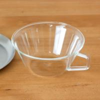 コーヒーカップ&ソーサー 耐熱ガラス ステンレス製受け皿 220ml 電子レンジOK 食器 ティーカップ コップ マグカップ ガラス製 キッチン用品 92096